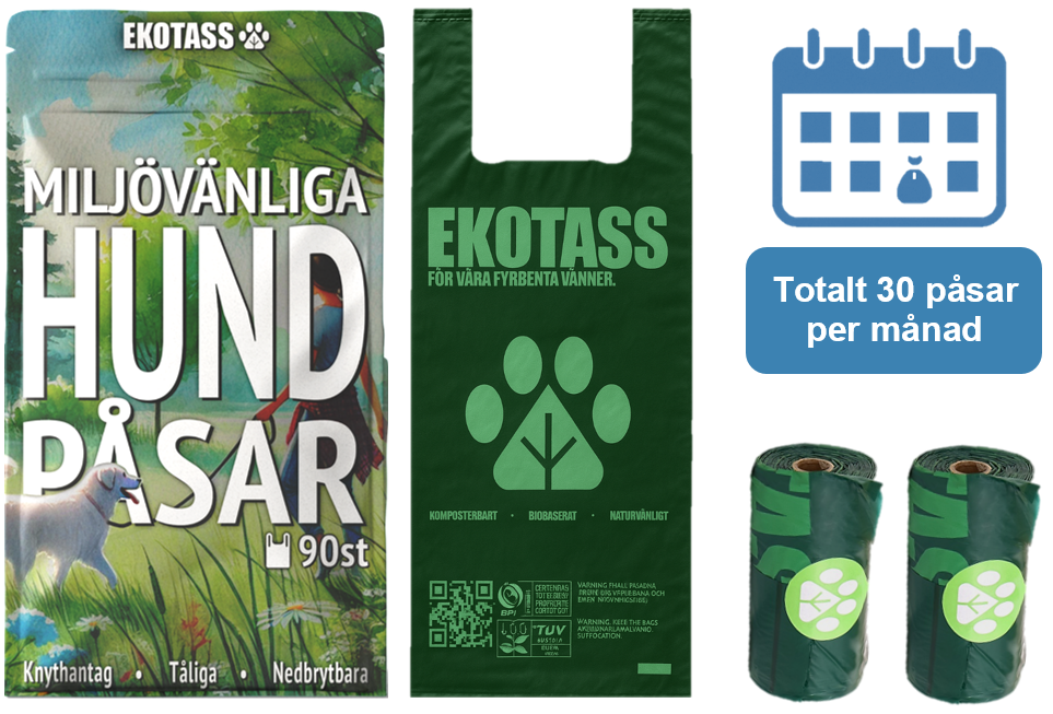 🌿 växtbaserat material - 🖐️ Bekväma knythandtag - ✂️ Lätta att riva av och öppna - 🐶 Hjälper hundar i nöd - 🚫 Inga mikroplaster - 💪 Mjuka men slitstarka